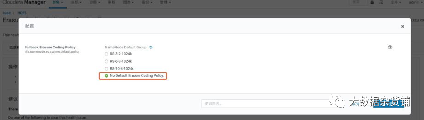 集群安装完成后,如果安装的数据节点比较少,hdfs会有纠删码的预警。Hdfs默认是开启纠删码设置的。