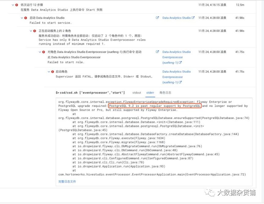 安装Data Engineering时,对应DAS的知识库如果不是PostgreSQL9.6,会报下面的错误:
