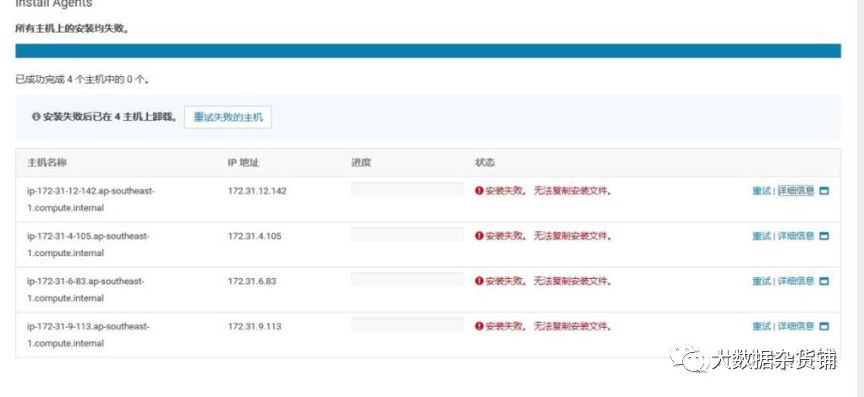 原因:由于我一开始起用了Https支持,所以安装agent时无法和master进行加密通信。其实agent是已经安装好了。最后把CM卸载重新安装,不启用https。