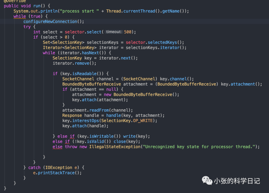n是n个Selector,每个Selector都等同于一个epoll,当连接建立后,我是不能放在Acceptor中做读写缓冲,处理请求这种耗时的事情的,这会影响后续连接的建立,降低我的吞吐量,所以我们在1后面放n个epoll,对于1接受到的socketchannel(Java名词,非Java的请代之以fd,fd是文件描述符,linux系统调用epollctl的参数即为socket的fd),对于这些新建立的连接,我们使用round robin算法将他们分散注册到n个epoll上,并设置对这些fd的感兴趣事件是读,为什么是读呢?总不会有连接刚上来就要写吧,它(客户端)总得先来获取api版本啦、metadata啦这些吧。