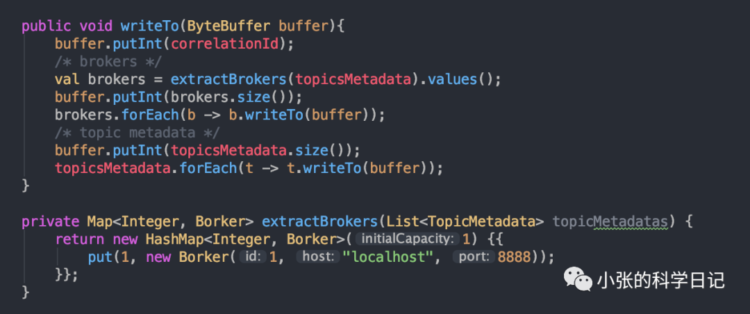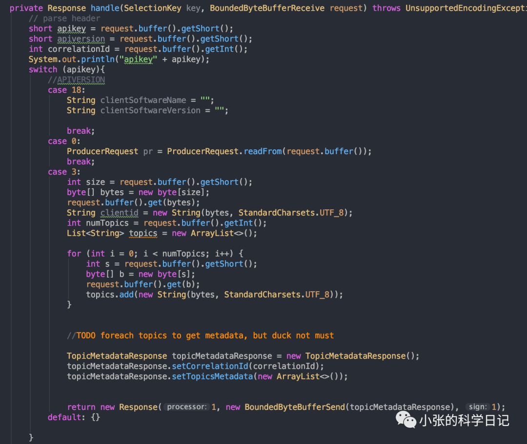 我们自己按照思路实现一下Java简版Kafka,并且完成一个简单的元数据获取测试,模拟0.7版本的1:n网络模型,为了省事n=1,模拟0.8的元数据协议。