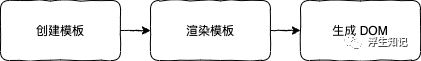 Vue.js 3.0 中组件的渲染过程与上图的思路区别不大,源码中主要利用了一个可以描述组件信息的 JavaScript 对象来实现 创建 -> 渲染 -> 生成