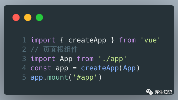 本质上与 Vue 2.0 没有区别,都是将根组件挂载到某一个特定 DOM 节点上面。微小的区别:无需导入全部的Vue 源码,可以支持 tree-shaking,去掉没有使用的 Vue 特性。