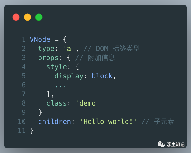 上面这个例子演示了VNode 怎么描述真实的 HTML 节点,那么延伸一下,