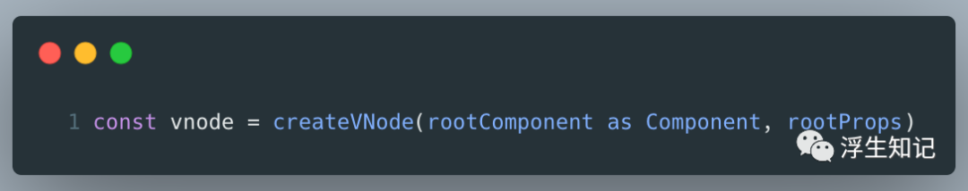 上文中的初始化流程中,createAppApi 调用 createVNode 函数在 mount 时创建 VNode: