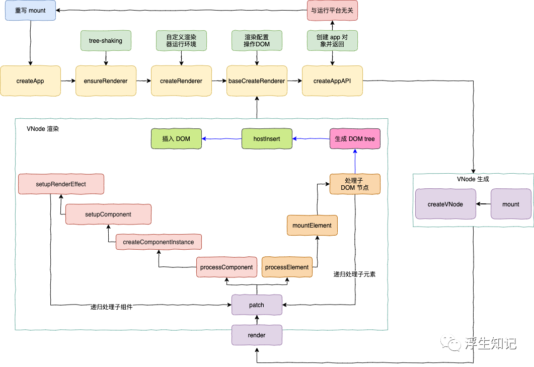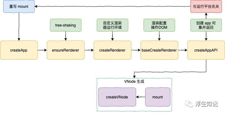 到这里,基本上 Vue 3.0 的入口函数逻辑介绍完毕。用一张图来描述:
