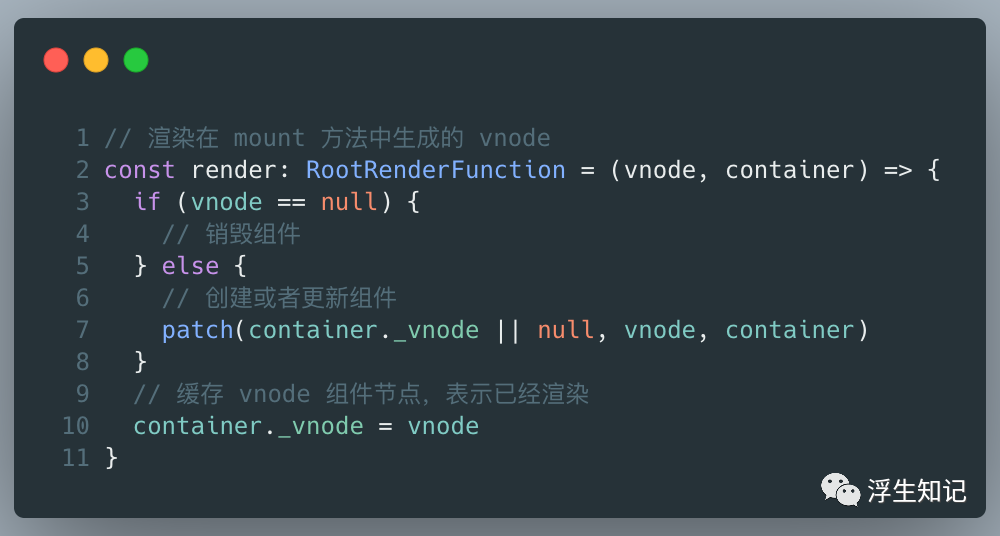 VNode 生成之后,会进行 render 的操作,该部分代码在上文提到的 baseCreateRenderer 中: