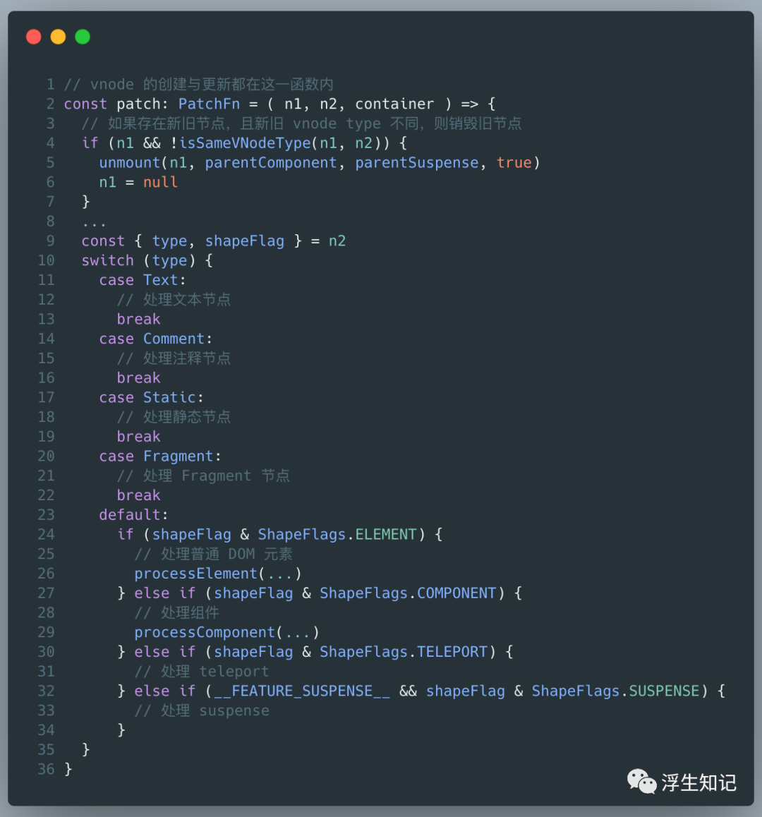 Vue 3.0将 VNode 节点分成 5 种来进行处理: