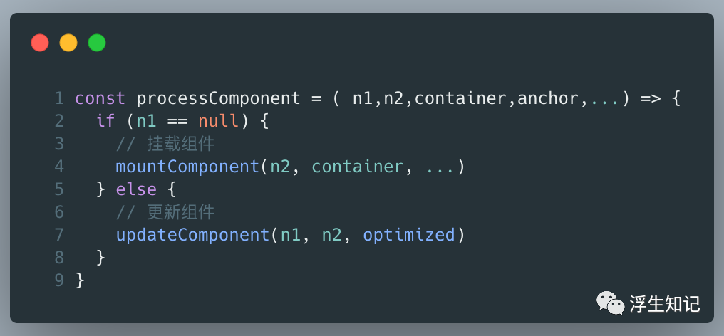 考虑初次渲染,n1 参数为空,进入挂载组件流程。