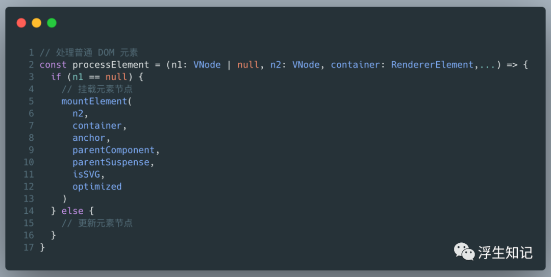 这个函数,整个函数内部代码 1795 行,包含了整个生成以及 DOM diff 逻辑,下面将这个函数精简下,只讲解初始化渲染逻辑。