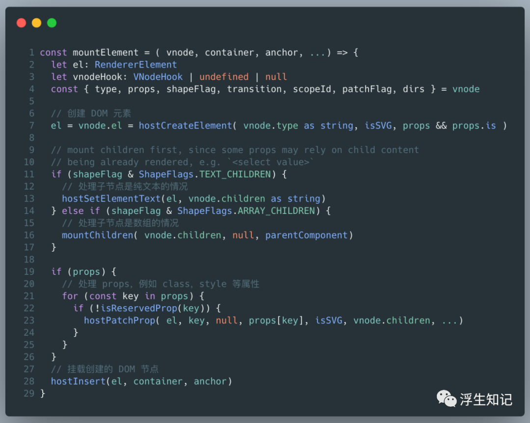 加载元素节点的方法是mountElement