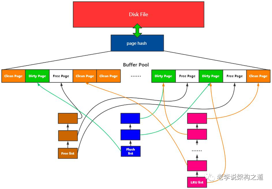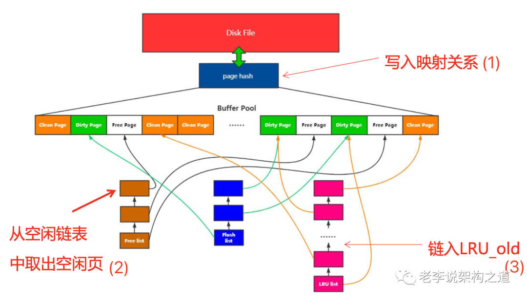 数据从磁盘到内存 > Free list中取 > LRU中淘汰 > LRU Flush