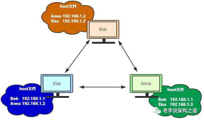 Key:Value的方式,终端保存本地,访问速度快。同时,本地变更速度慢,host文件越来越大,没有统一的命名规范,主机名冲突,维护映射关系代价高。主要应用于测试环境。