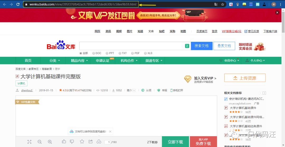 先去百度文库找到你想下载的文档的链接