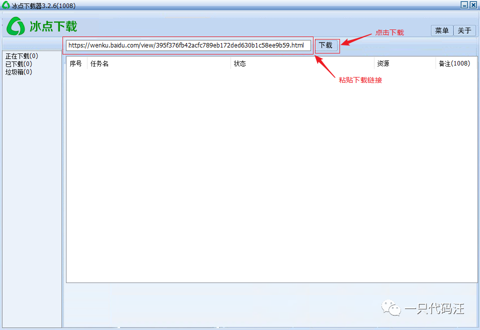 将链接复制然后粘贴到冰点文库下载器中,点击下载