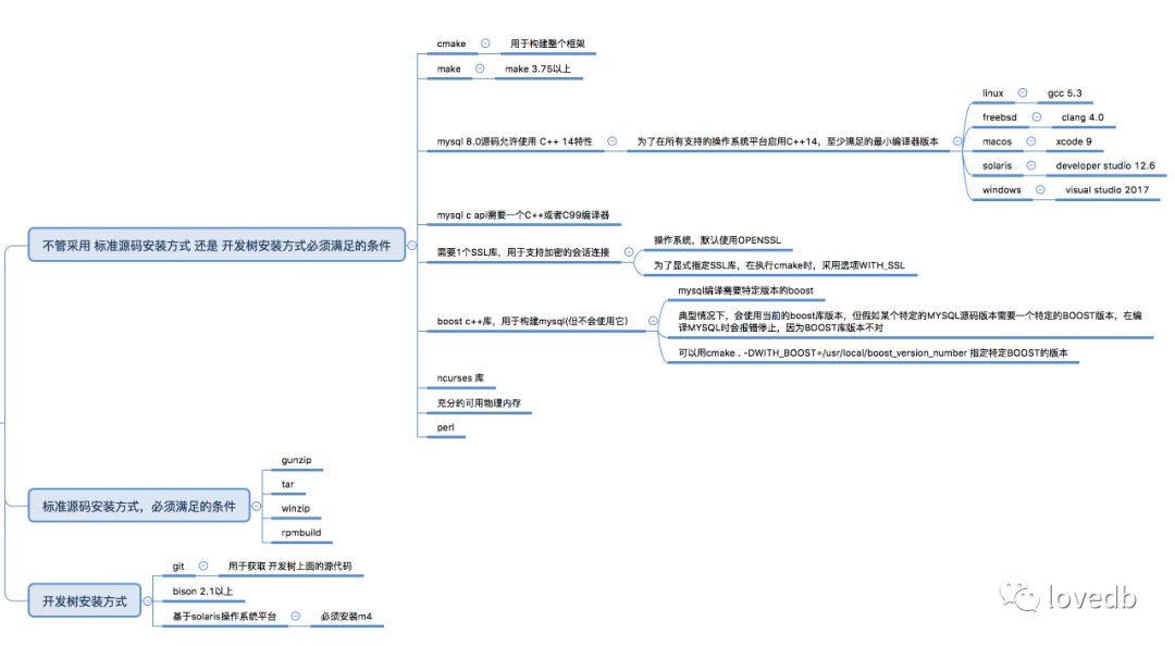 mysql有多种安装方式,源码安装也是其中一种。通过这种方式,可以极大定制一些mysql的功能,包括:存储引擎的启用和禁用,某些功能的启用及禁用;某些变量的启用及禁用;通过源码安装可以用gdb进行调试分析mysql源码,进一步掌握mysql内部运行机制及原理。
