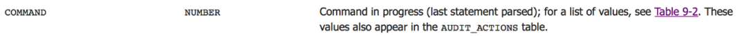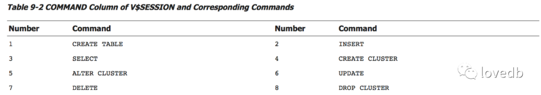 但是查阅v$session.command列,是包括各种ddl操作指令,可见v$session是具备记录ddl操作的功能