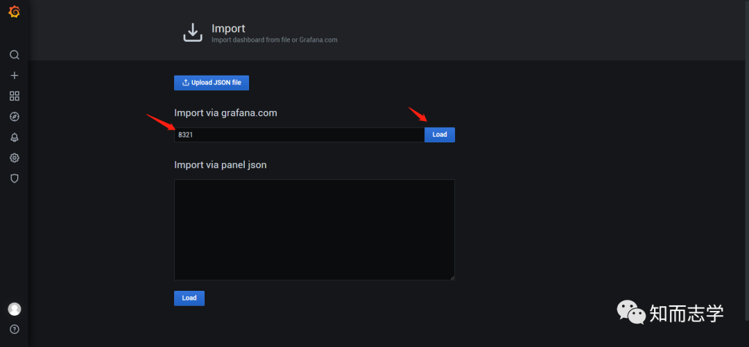 添加Dashboards,导入模板 https://grafana.com/grafana/dashboards/8321