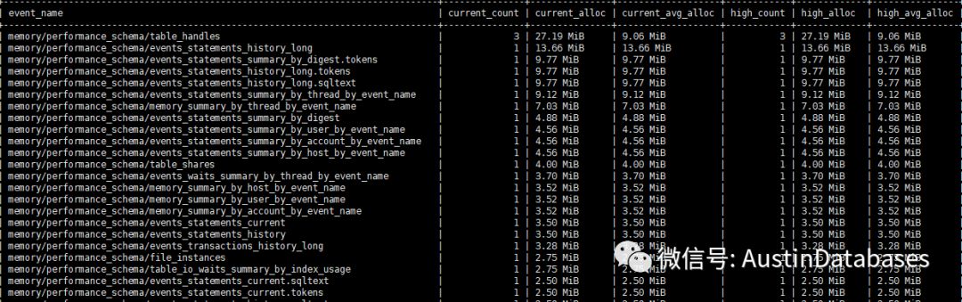 最后,MYSQL的内存除了上的一些东西,其实可以通过SYS 库 或者 performance_schema 中的一些表来查看当前的内存情况,方便对当前的系统进行调节。