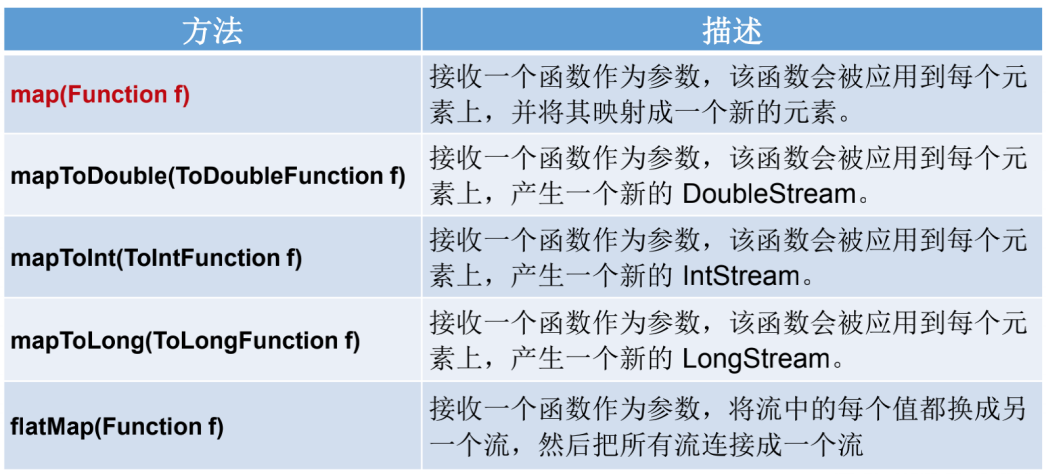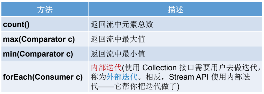 终端操作会从流的流水线生成结果。其结果可以是任何不是流的值,例如:List、Integer,甚至是void 。