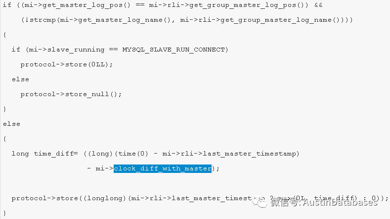 2 上边是计算SBM的源码实现,其中深色的位置 clock_diff_with_master 是标识主从库的时间差异,但你能保证获得主从库不同的时间是稳定可靠的吗? 如果不能保证在任何一刻主从库的系统时间差异是准确的,你有怎么能说得到的SBM 是准确的。
