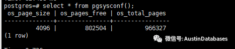 通过pgsyusconf() 可以查看当前系统的OS 控制的页面有多少,剩余多少。在通过这个插件可以很清晰的指导,当然我们缺少不缺少系统OS层面的缓存。(缺不缺 OS 系统缓存的问题我们可以解决了)