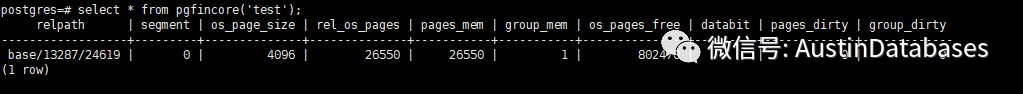 select * from pgfincore('test'); 可以看到一个表的DISK 与OS PAGE 之间的对应的关系,