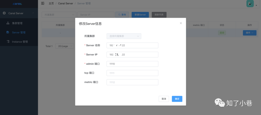上图展示的是可以对canal server做的操作,如果是之前已经在服务端配置好了,原样拷贝过来;用起来非常方便。