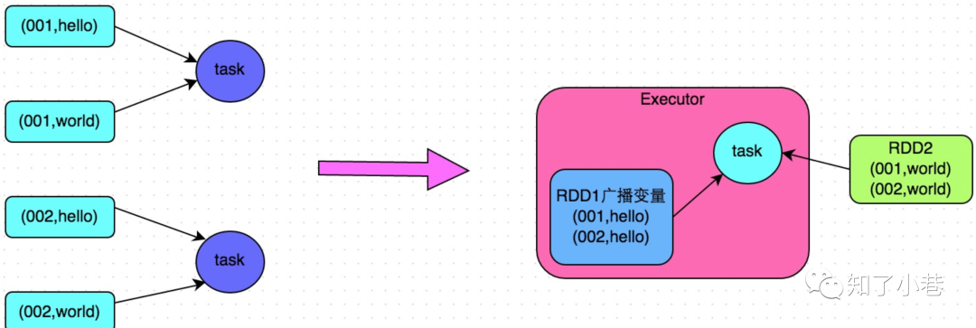 | 将reduce join转为map join | 小表广播到大表所在executor进行map-join | 在对RDD使用join类操作,或者是在Spark SQL中使用join语句时,而且join操作中的一个RDD或表的数据量比较小(比如几百M或者一两G) |