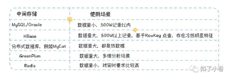 数据中台中数据以Hive表的形式存在,基于Hive或者是Spark计算引擎,并不能满⾜数据产品低延迟,⾼并发的访问要求,所以,⼀般做法是将数据从Hive表导出到⼀个中间存储,由中间存储提供实时查询的能⼒。数据服务需要根据应⽤场景⽀持多种中间存储,这里列举了⼀些常⽤的中间存储以及这些存储适⽤的场景,希望能根据实际场景选择适合的中间存储。