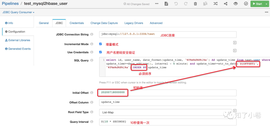 Record Count (since last startup)上面显示数量大于1是因为查询SQL里面的更新时间是大于等于OFFSET,而且每10秒扫描一次,因此会不断被扫描到,SQL里面加上了最近五分钟的限制,因此重复次数不会太多,如果是大于OFFSET,有可能会导致数据丢失。