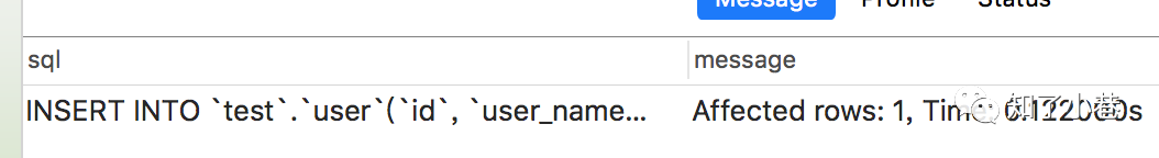 INSERT INTO `test`.`user`(`id`, `user_name`, `update_time`) VALUES (2, 'ZLXX_INSERT', SYSDATE());