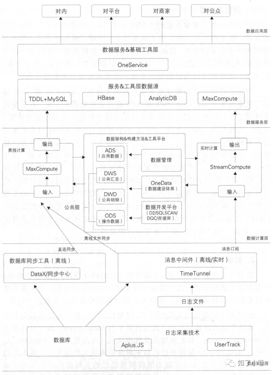 数据计算层:数据存储及计算云平台(离线计算平台MaxCompute和实时计算StreamCompute);数据整合及管理体系(被称之为“OneData”)。MaxCompute离线大数据平台提供强大的存储和计算引擎;StreamCompute实时计算平台能够较好地支持流式处理需求。