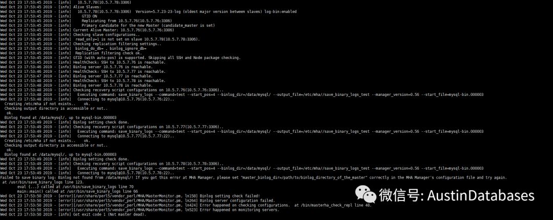 [error][/usr/share/perl5/vendor_perl/MHA/ServerManager.pm, ln239] Binlog Server is defined but there is no alive server.