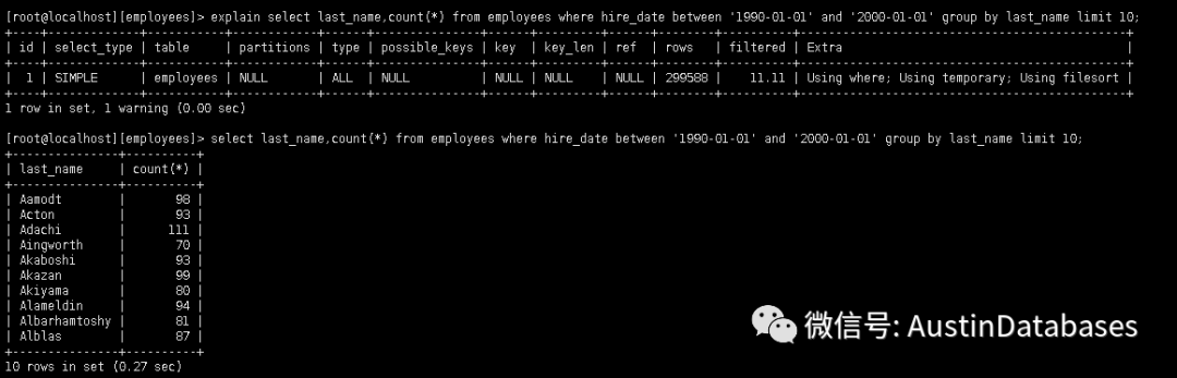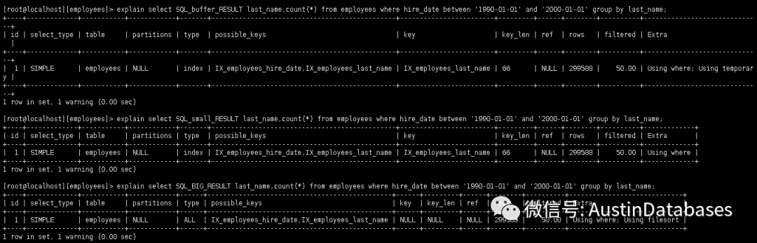 当然我们也可以通过,一些参数来强制系统查询的预期结果,例如 SQL_SMALL_RESULT , SQL_BIG_RESULT , SQL_BUFFER_RESULT