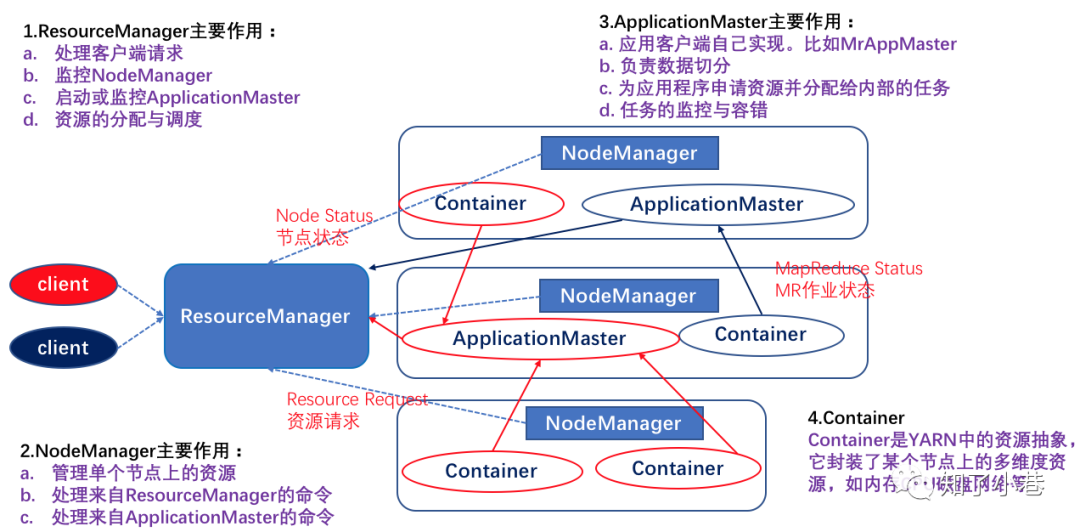 【HDFS可以理解为分布式硬盘-分布式文件管理系统,YANR可以理解为分布式的操作系统-分布式资源(cpu, memory, disk, network)管理和分布式的进程调度,MapReduce是运行在分布式操作系统YARN上的应用程序,还有Spark on YARN、Flink on YARN等等,WritingYarnApplications可参考官方文档】
