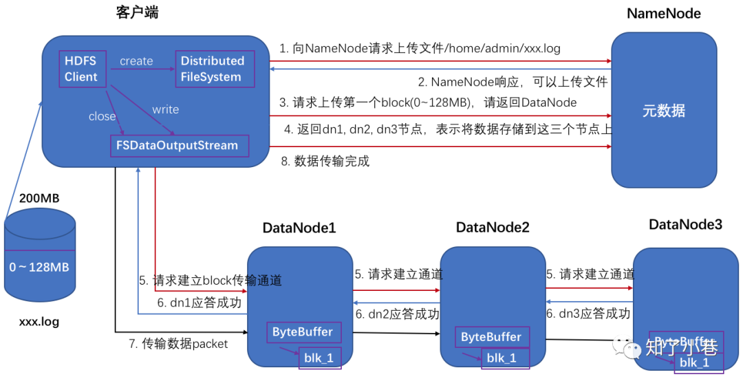 (1)文件切分。文件上传HDFS的时候,Client将文件切分成一个一个的Block,然后进行存储;
