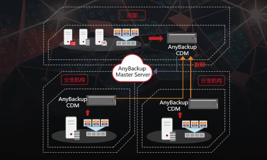 针对上述难题,AnyBackup CDM 7.0集成AnyBackup Master Server 7.0帮助大型组织打造多分支机构集中灾备解决方案,以构建跨地域灾备云平台。管理人员只需在总部,就可统一管理各个分支机构的灾备任务,大幅降低管理工作量。