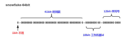 在雪花算法中,ID有8个字节,64位。64位是怎么分配的呢?看一下下面这张图。