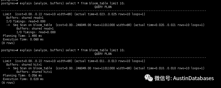 我们关闭postgresql 再从重启动PG ,再次运行,看到图中查询已经走了cache