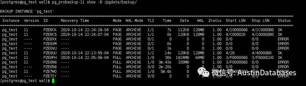 pg_probackup-11 backup -B pgdata/backup/ -b page --instance pg_test -d test -h 192.168.198.123 -p 5432 -U admin -w