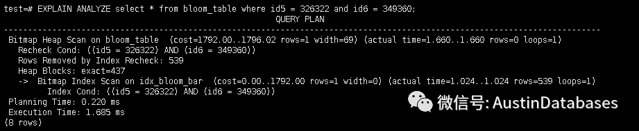 勘误,昨天有一位 海外 friend 指出昨天文中 postgresql bloom 中的第四步截图是并行扫描,而没有用到bloom 索引,这里抱歉,经查实截图错误,下面是重新的截图,同时另一幅截图也有问题建立索引时缺少 USING bloom,感谢您。