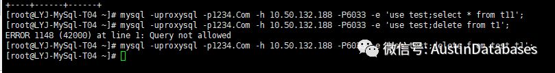 这样就杜绝了,某些人士不合时宜的访问数据库的行为,当然如果是危险的操作,我们也可以禁止,例如delete from test.t1; delete from t1; 这样的操作。