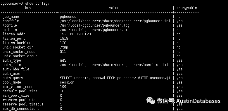 PgBouncer 有一个配置文件 pgbouncer.ini 还有一个用户账户文件 userlist.txt
