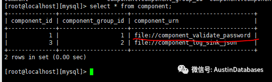 如果你在MYSQL 数据库中执行完上面的语句,能看到我红色线画的内容,说明你安装了这个组件(具体咱们安装这个组件,请 B or G )