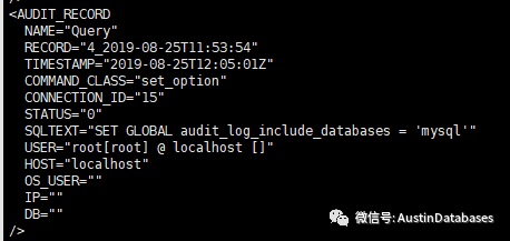 下面两张图是相关的配置信息,和audit LOG 中的内容,具体的就不多说了,都是精英,稍微看一下就都会了。