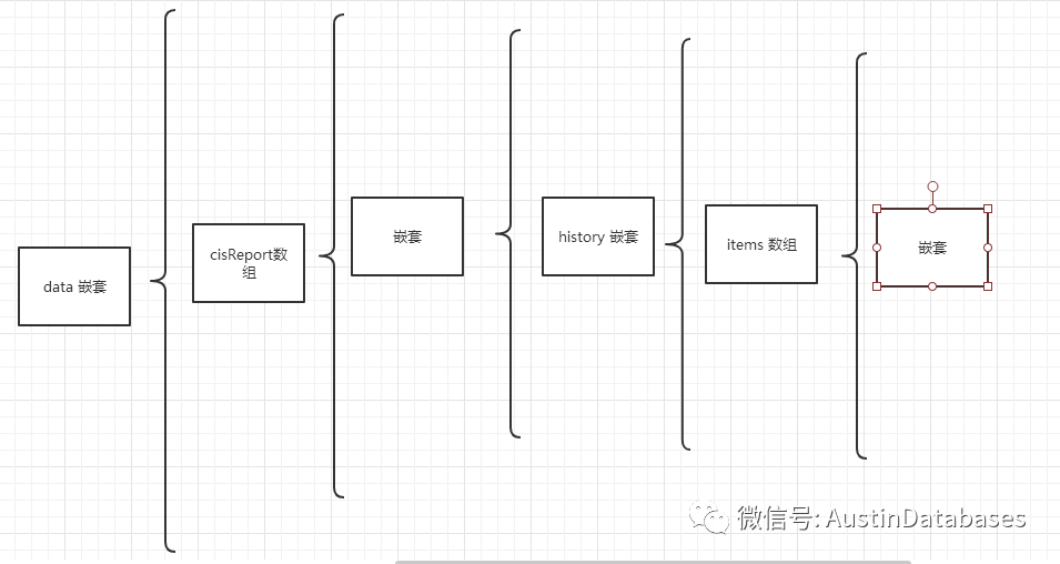 我们看看我们要查的数据的格式是怎样布局的,由于一个document 的数据太大,所以我先画一个图让大家了解一下我要查询数据的到底在第几层