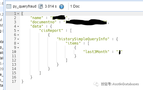 起初我单纯的认为是,分析人员不会语法导致的,但是后面我发现问题没有那么“简单”。这里以 鹏元的某些反馈的征信数据为例,这样的MONGODB 的“表”设计的确是不得不吐槽。