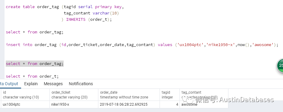 而要解决一个实时性的问题,其实我们可以使用PG 独有的继承的概念和功能