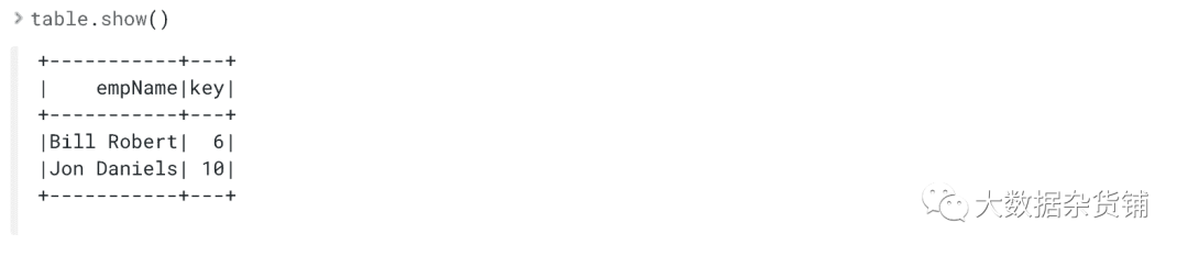执行 table.show()将为您提供: